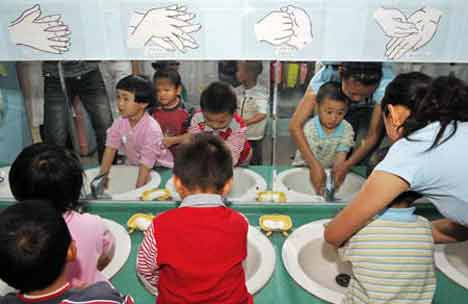 • Rửa tay bằng xà bông và dưới vòi nước chảy trước khi ăn và sau khi đi tiêu.