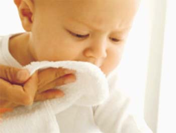 (Nên lau nước dãi quanh miệng trẻ bằng khen mềm.)